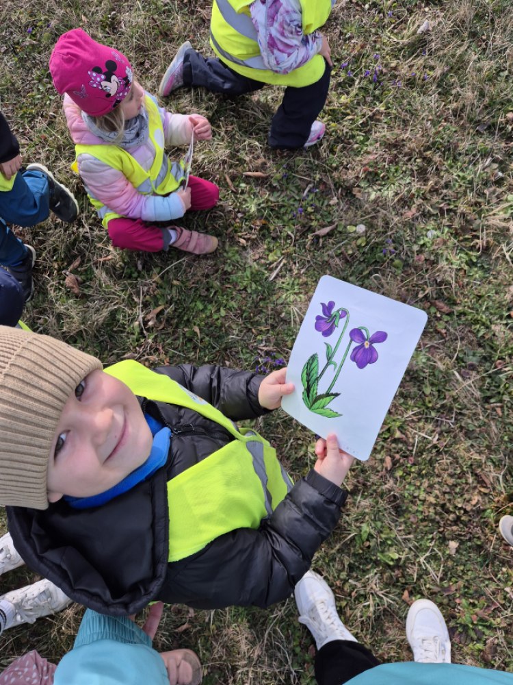 Krásné jarní počasí vylákalo Rybičky do přírody. Místo školní třídy se naším zázemím stal les a děti si mohly na vlastní kůži vyzkoušet, že učit se dá opravdu kdekoliv. Cestu do lesa jsme využili k malému jarnímu pátrání. Už u školky děti dostaly obrázky jarních květin a jejich úkolem bylo je po cestě najít. S velkým nadšením hledaly podle tvaru listů i barev květů a radovaly se z každého správného objevu. Mnohé děti si začaly všímat věcí, které by jinak pravděpodobně jen minuly.